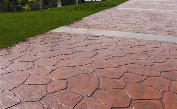 彩色壓花地坪的外觀自然真實,圖案豐富,可以懷舊或者古典,浪漫或者現代,可以和新澆的混凝土同步施工,施工比較方便快捷。
