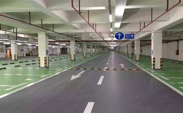由于車行頻繁,相對于停車區,設計要加強,可采用1~3㎜環氧砂漿地坪或2~3㎜環氧自流平地坪,顏色通常為綠色,車行通道寬度根據現場情況設置,通常雙向行車道不宜低于6米,單向行車道不宜低于3米,人行通道為1.5~2米,通道兩側劃中黃色標志線,線寬8~12㎜。