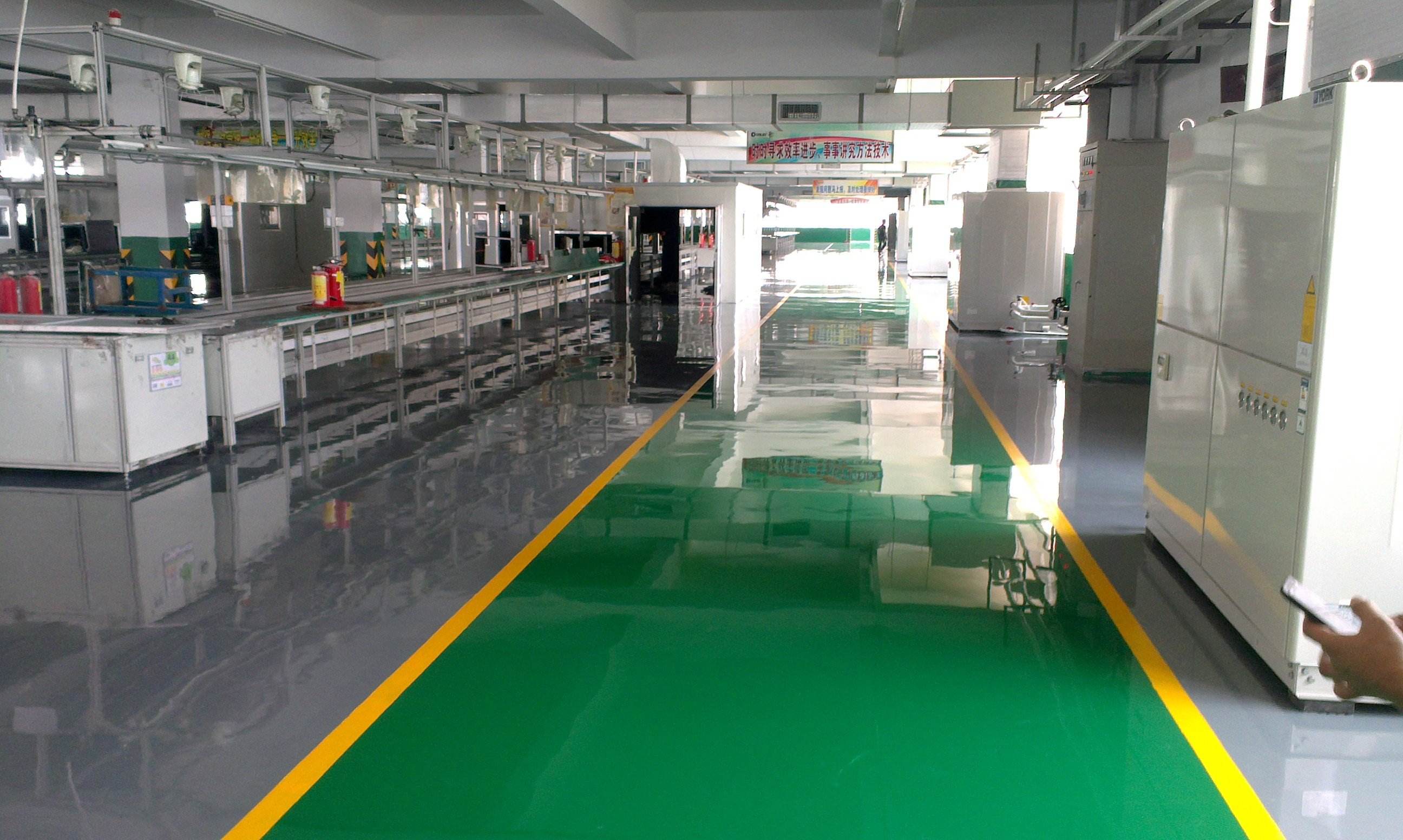 環氧自流平地坪因耐磨、耐壓、耐腐蝕、潔凈、美觀,用于電子、醫院、食品飲料、工業廠房車間等潔凈要求較高的場所。