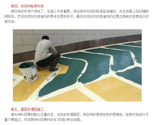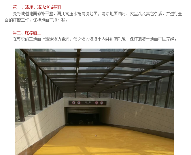 地下車庫出入口防滑坡道是車流量比較大的場所,表面要進行防滑處理,車庫進出口有一定的斜坡,為了車輛的安全行駛,一般使用河南秀地無震動防滑坡道材料施工;無震動防滑坡道材料采用水性樹脂添加無機坡道骨料,按照一定的配比進行攪拌批刮,顏色一般分為黃綠色或者黃灰。防滑坡道材料不僅可以用于車庫出入口的防滑,還可以用于路面的防滑和路面斜坡的防滑處理,高強耐磨材料,應用范圍比較廣。